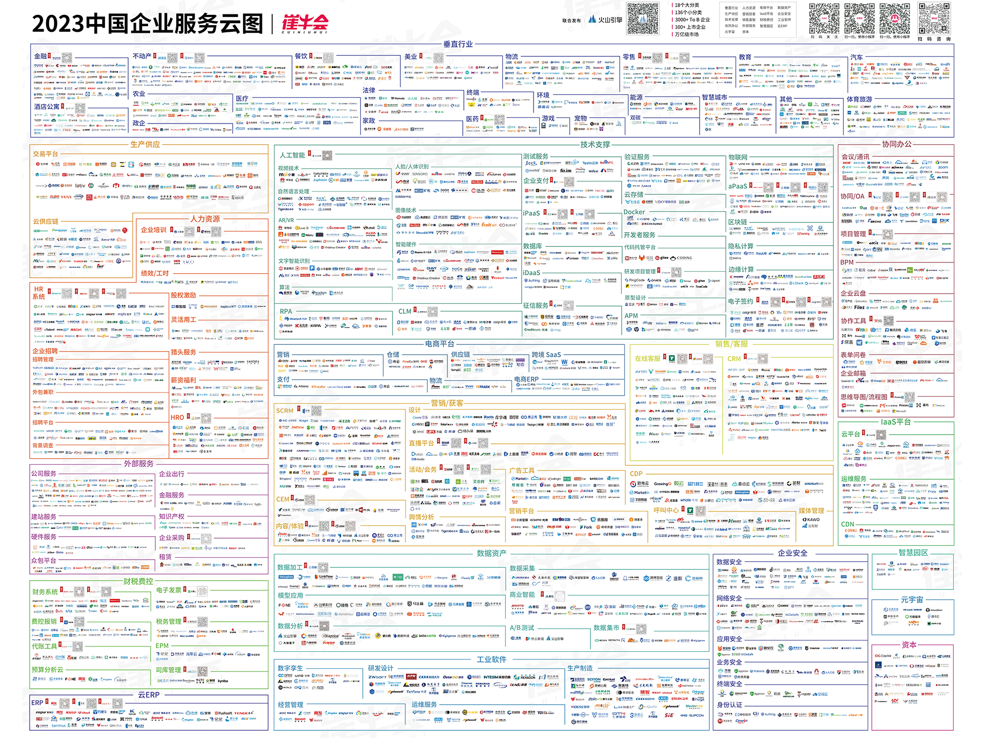 该云图涵盖中国2000+家To B企业,汇聚数字化领域最优秀的一批企业服务商,堪称中国企业数字化选型的“宝典”。正所谓“一张云图墙上挂,中国企服心中藏,鸟瞰中国企服景,把脉产业全发展”,从用户视角进行分类,为企业开展数字化转型及建设提供选型参考。