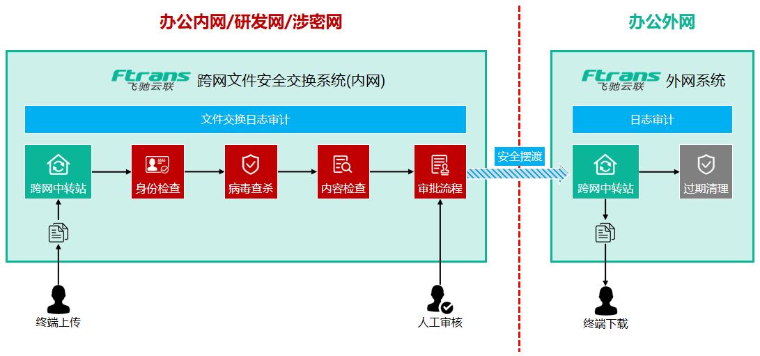 不妨了解一下专业的跨网文件交换产品,Ftrans飞驰云联的《Ftrans Ferry跨网文件安全交换系统》,以软件系统为核心,无需复杂的环境支持,部署简单,大幅减少IT人员日常维护工作量。