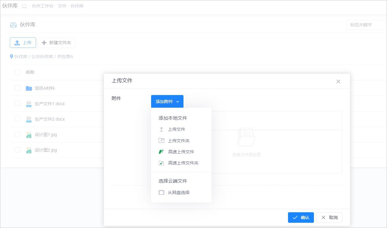 多种文件来源:支持本地上传或从企业网盘选择文件,简化操作流程。