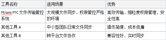 在探讨服务器文件同步工具的适用场景及优势时,不得不提Ftrans FTC文件传输管控系统。它专为大型企业和机构设计,适用于需要高效、安全地进行大规模文件同步的场景。该系统不仅支持跨平台、跨地域的文件同步,还能实现细粒度的权限管控,确保数据安全。此外,Ftrans FTC文件传输管控系统在传输效率上表现卓越,大幅提升了业务运行效率。以下表格列举了几款主流同步工具的适用场景及优势,其中包括了Ftrans FTC文件传输管控系统的亮点: