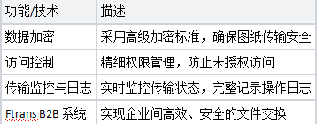 图纸安全外发平台,其核心在于强大的功能与高精尖的技术支撑。该平台集成了诸如Ftrans B2B企业间⽂件安全交换系统等先进技术,确保了图纸在传输过程中的绝对安全。它不仅能对图纸进行高强度加密,还配备了精细的访问控制机制,只有授权人员才能查看或操作图纸。此外,平台还提供了实时的传输监控与日志记录功能,让每一次图纸外发的流向都可追溯、可审计。以下是该平台核心功能与技术概览表:
