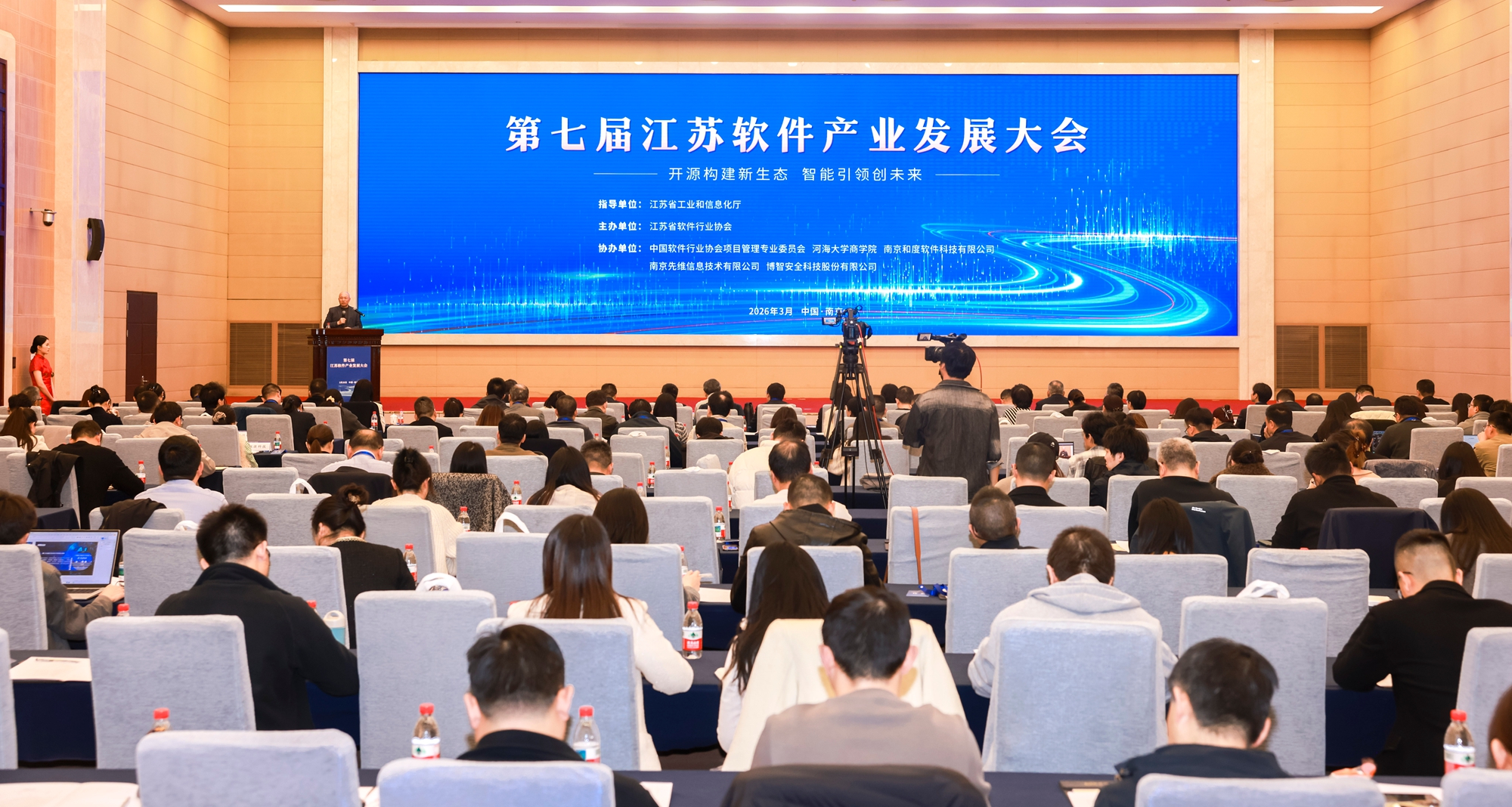 本次大会由江苏省工业和信息化厅指导、江苏省软件行业协会主办,以“开源构建新生态,智能引领创未来”为主题,汇聚政产学研金用各领域人士,共同探讨智能经济时代软件产业的创新和发展,来自省内外的企业、高校、科研院所、学会、协会代表400多人参加会议。