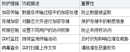 在企业的数据传输中,安全防护措施不可或缺。随着网络攻击技术的不断升级,数据泄露风险加剧。通用的防护措施包括加密传输、访问控制以及实时监控等。这些措施能有效地保障数据在传输过程中的隐私和完整性,使公司信息不易被未授权访问或窃取。通过加密协议和存储加密技术,如SSL/TLS和AES,加大了安全壁垒,确保只授权用户能够访问敏感文件。此外,持续监测和病毒查杀功能可以及时发现潜在威胁,减少企业损失。有效的安全管理策略能增强客户对企业的信任,为公司的声誉保驾护航。