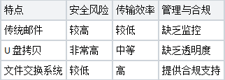 为了有效应对这些挑战,企业需要为内外网文件交换系统选择合适的技术方案,以保障数据安全和提高工作效率。以下表格展示了不同方案的特点:
